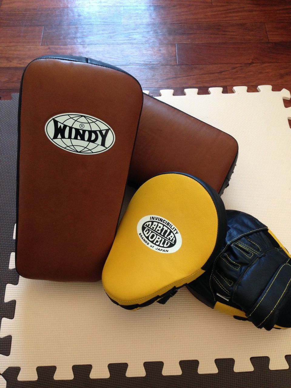 NEWミット到着 24 1月 2014 カテゴリ: お知らせ ミットから粉々のスポンジが飛び出してきてしまったのでNEWミット購入しました! 蹴り心地が最高で、持ち手も受けやすいWINDYのキックミットとMWのパンチミットです。 これで打撃力UP間違いなし! 稽古が楽しみです☆